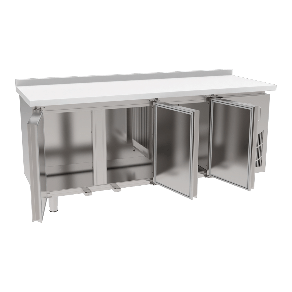 * Opsiyonel ürünler: Cam kapı, ilave tel raf, tekerlekli ayak, aydınlatma, kapı kilidi, 1/3-1/2-2/3 çekmece sistemleri (Çekmeceler GN1/1 kap alabilecek ebatlarda olup eni 305mm, boyu 520mm, yüksekliği 1/2 için 200mm, 1/3 ve 2/3 için 100mm`dir.)