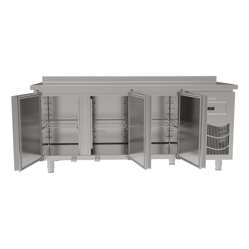 * Opsiyonel ürünler: Cam kapı, ilave tel raf, tekerlekli ayak, aydınlatma, kapı kilidi, 1/3-1/2-2/3 çekmece sistemleri (Çekmeceler GN1/1 kap alabilecek ebatlarda olup eni 305mm, boyu 520mm, yüksekliği 1/2 için 200mm, 1/3 ve 2/3 için 100mm`dir.)