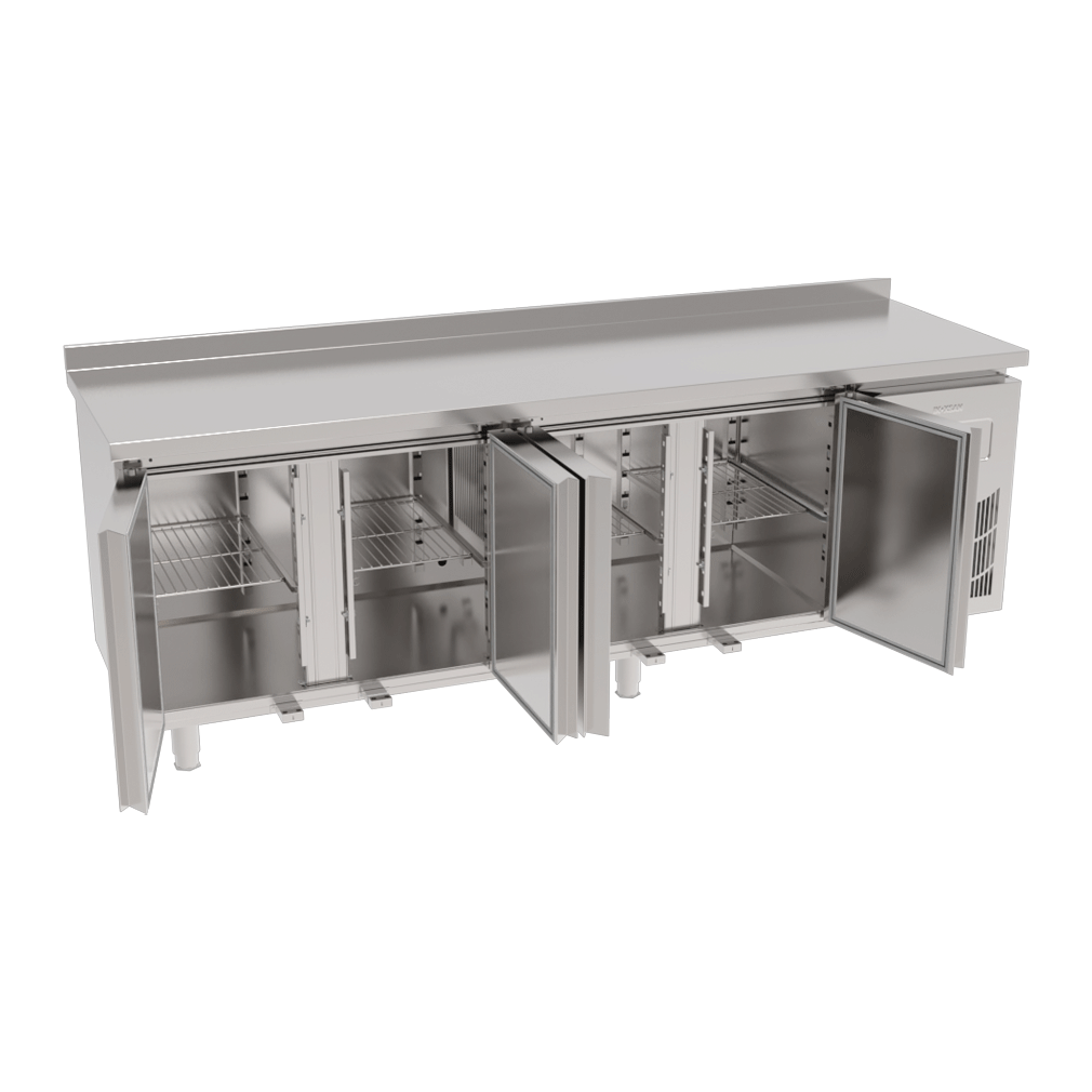 * Opsiyonel ürünler: Cam kapı, ilave tel raf, tekerlekli ayak, aydınlatma, kapı kilidi, 1/3-1/2-2/3 çekmece sistemleri (Çekmeceler GN1/1 kap alabilecek ebatlarda olup eni 305mm, boyu 520mm,
